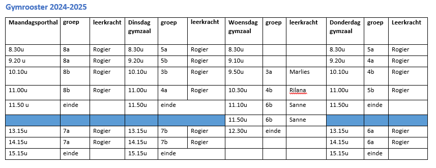 - 6a mag op woensdag wel met de fiets naar gym omdat zij om 12.30 na gym meteen naar huis fietsen.